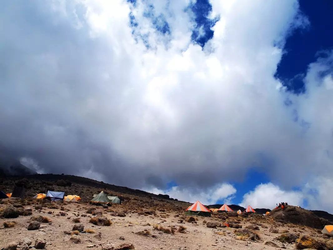 I dag vandrer du gennem månelandskabet ”The saddle”, som forbinder Mawenzi og Kibo. Du ankommer til Kibo Huts, som ligger for foden af Kibos kratervæg. Efter ankomst forbered da dit udstyr og varme tøj til næste dags vandring til toppen og opbevar drikkevand i en termoflaske, så det ikke fryser til is. Brug herefter resten af dagen på at slappe af, og sørg for at gå tidligt i seng for at få de menneskelige batterier ladet op til Kilimanjaros ultimative udfordring.