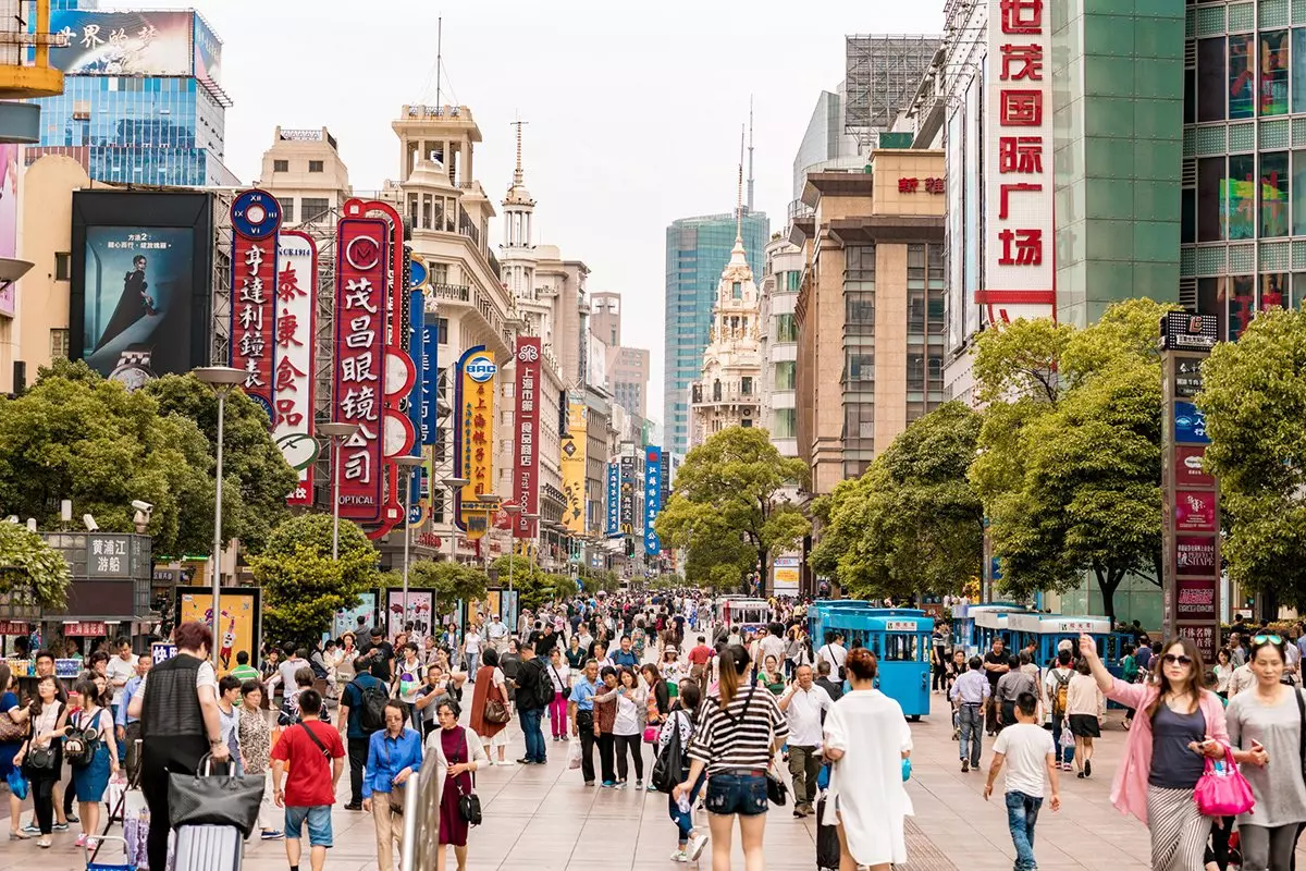 Første besøg er den nærtliggende og populære gade, Nanjing Road, som er en af verdens travleste shoppinggader med ca. 1 million daglige besøgende. Gaden er 5,5 km lang og er dermed også den længste shoppinggade i verden. Den løber fra The Bund i øst til Jing’an-templet i vest. Her findes både mærkevarebutikker, traditionelle butikker, vestlige fastfoodrestauranter og butikker med silke og souvenirs.
