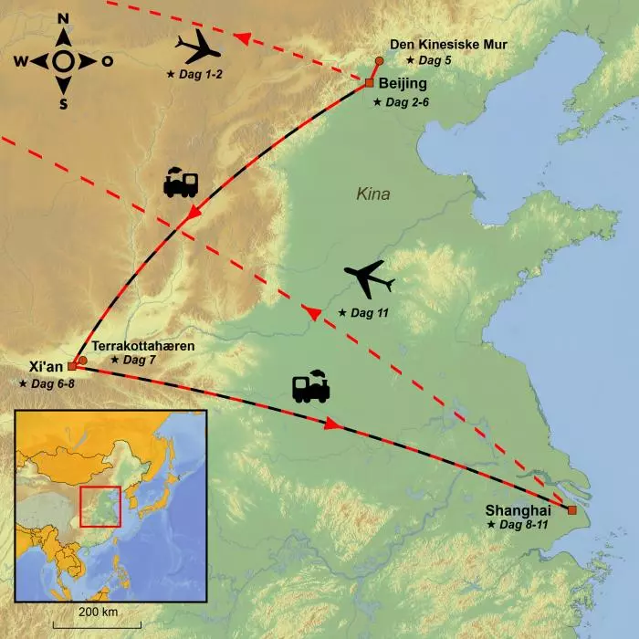Du starter i det historiske magtcentrum, Beijing, hvor du går i kejsernes fodspor. Her oplever du Den Himmelske Freds Plads, Den Forbudte By og Beijings højeste punkt, Kulhøjen.