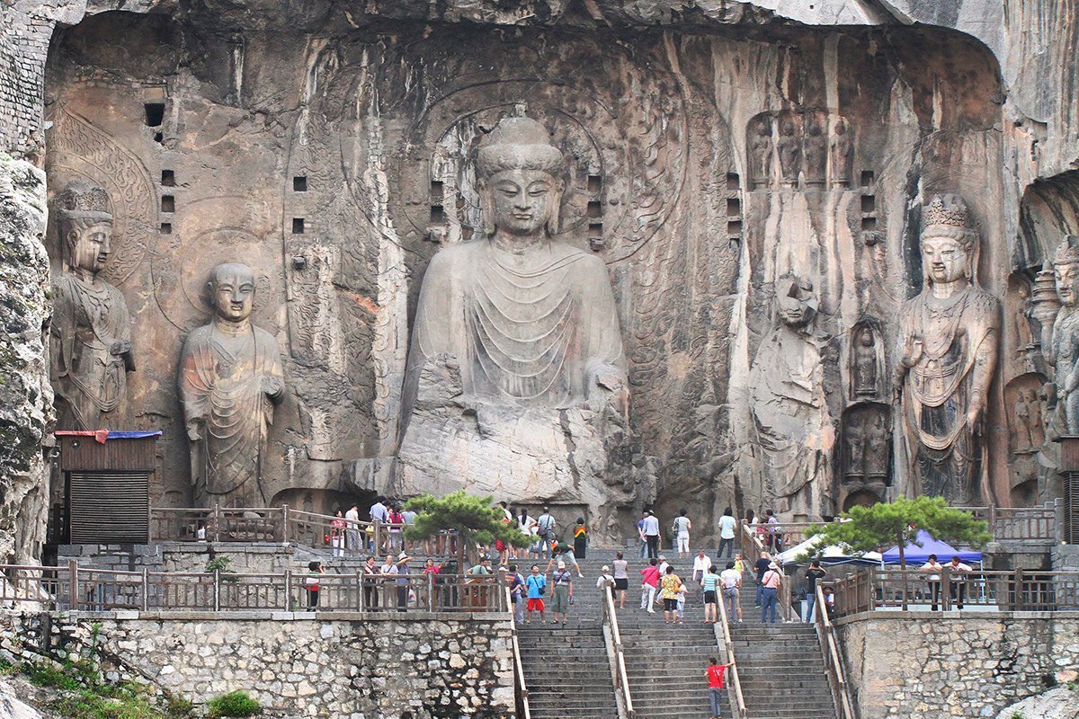 Du besøger de vigtigste grotter, herunder Forfædre-grotten, som er udhugget i årene 672-675 under Tang-dynastiet. Forfædre-grotten er den største og langt den mest imponerende af dem alle. Det er her, du finder den 17 meter høje Buddha, som har 2 meter lange øreflipper. Normalt er buddhaer maskuline, men ansigtet på denne Vairocana-Buddha (Losana) er meget feminint, og det siges at være kejserinde Wu Zetian fra Tang-dynastiet. Buddhafiguren er omringet af de to disciple Ananda og Mahakasyapa samt to bodhisattvaer.