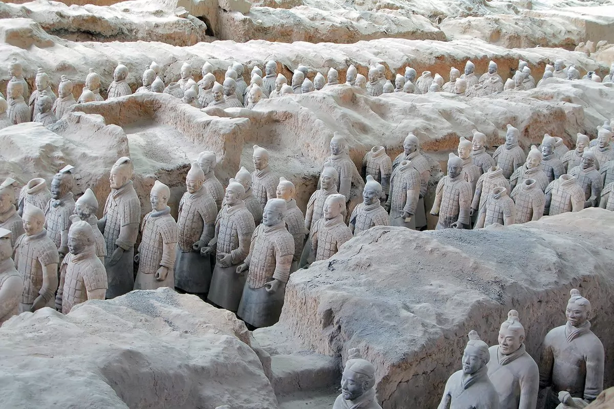 Det var lokale bønder, som var i gang med deres daglige arbejde ude i markerne, der i 1974 fandt fragmenter af en skulptur i menneskestørrelse. Arkæologer fortsatte udgravningerne, som resulterede i verdens største fund af underjordiske skulpturer. Udgravningen resulterede i over 7.000 terrakottakrigere, heste og vogne. Krigerne er mellem 175 og 190 cm høje, og ikke to krigere er ens. De har alle forskellige dragter, frisurer og ansigtstræk. Krigerne er opstillet på række nær kejser Qin Shi Huangs gravmæle. Fortællinger lyder på, at krigerne blev bygget til at beskytte deres hersker i efterlivet.