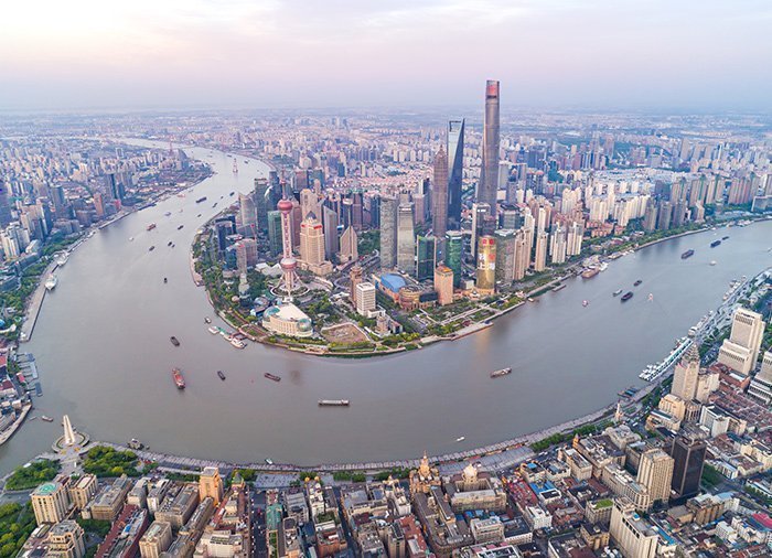 Shanghai er Kinas største by med knap 25 mio. indbyggere. Huangpu-floden, som er en biflod til den enorme Yangtze-flod, deler byen i to – Shanghais nye finansdistrikt, Pudong, ligger på den østlige side af floden, mens byens historiske centrum, Puxi, ligger på den vestlige side.