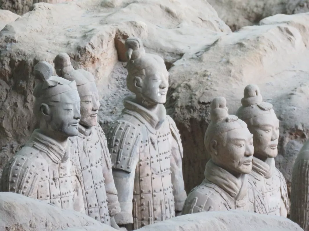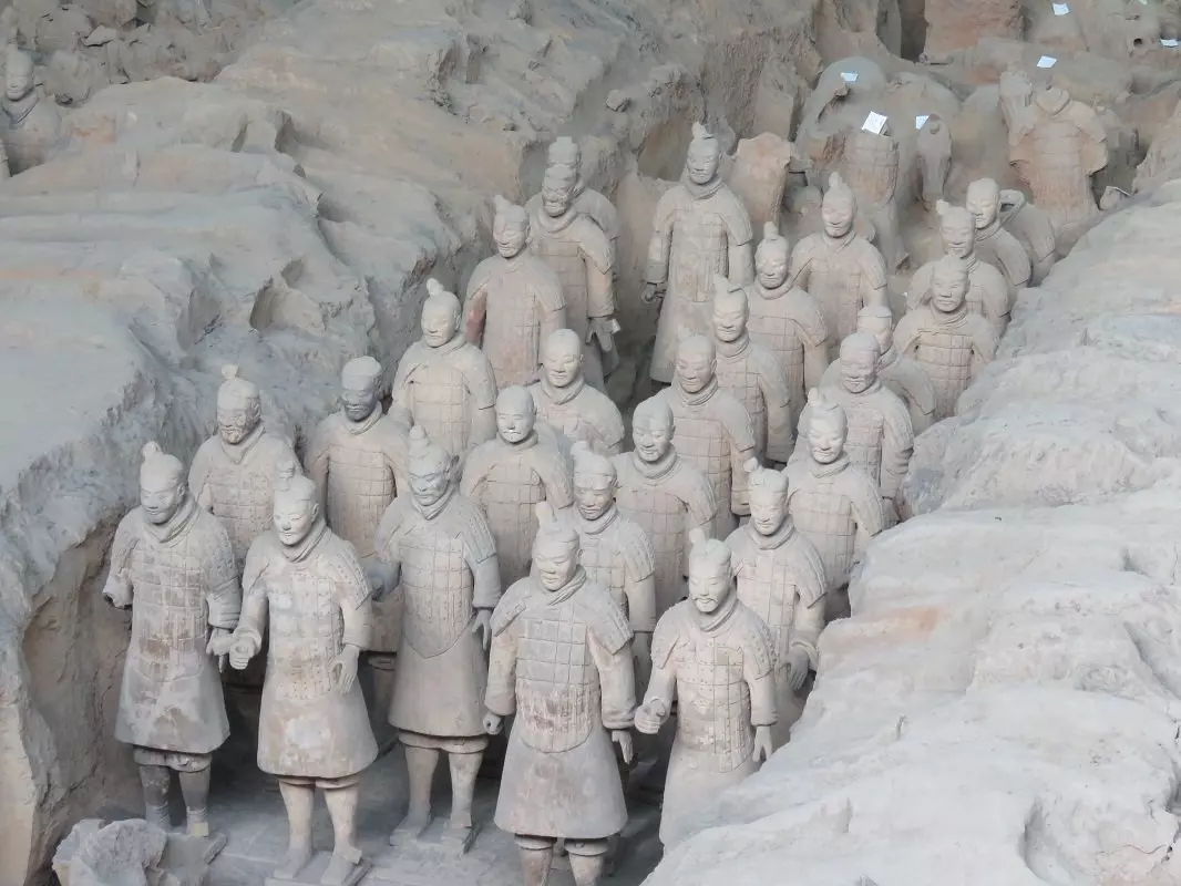 I år 1974 fandt bønder fragmenter af en skulptur i menneskestørrelse 45 km uden for Xi’an. Arkæologer blev tilkaldt og fortsatte udgravningerne, der resulterede i verdens største fund af underjordiske skulpturer. Over 7.000 terrakottakrigere, heste og vogne blev opdaget. Krigerne måler mellem 175 cm og 190 cm og har alle forskellige ansigtstræk, frisurer og dragter. De er opstillet på række klar til kamp nær kejser Qin Shi Huangs gravsted. Det siges nemlig, at krigerne blev bygget til at beskytte deres hersker i efterlivet.