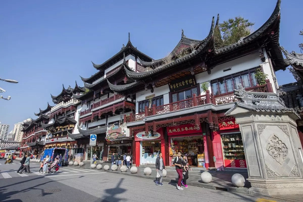 Fra Shanghai Old Street fortsætter turen til Jiuqu-broen, også kendt som De Ni Svings Bro, der snor sig over en lille sø med karper. Her står Shanghais ældste tehus, Huxinting, fra år 1855. Jiuqu-broen fører dig videre til indgangen til Yuyuan-haven, der er Shanghais fineste have.