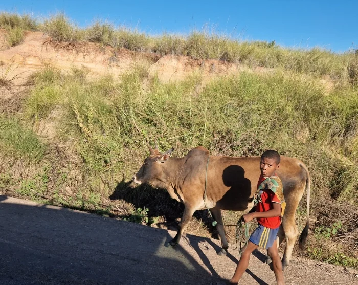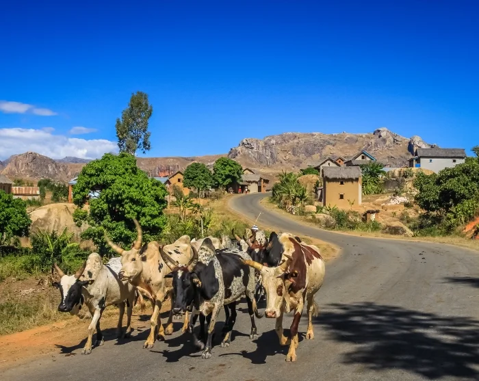 Alle steder ser man zebu. De ligner den karakteristiske indiske ko med en fedtpukkel i nakken, men zebuen er dog ikke hellig på samme måde som i Indien. I Madagaskar må man gerne spise zebu, og det smager fremragende.