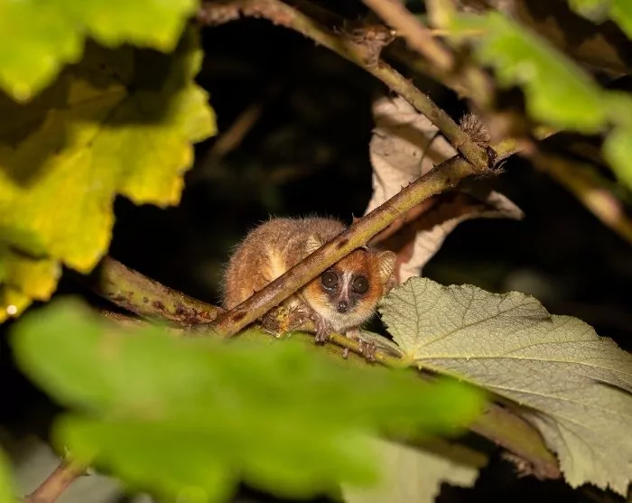 Allerede efter solnedgang venter den første guidede gåtur, hvor du skal på udkig efter de nataktive lemurer. Især muse-lemurer er i fokus på denne gåtur. De er bittesmå – på størrelse med en lille mus – og de hopper hurtigt og elegant mellem træernes grene, som var de egern. Der er ikke noget at sige til, at en af arterne, Goodmans muselemur, først blev opdaget i 2005! Hold også øje med vandrende pinde, frøer og kamæleoner.