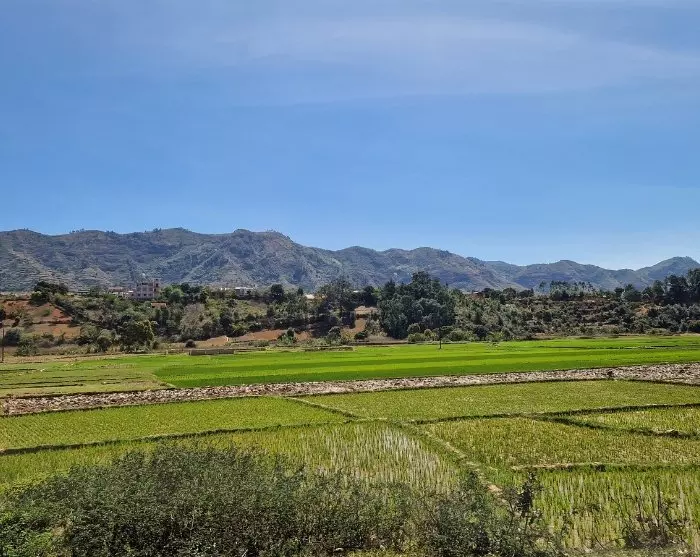 Selv helt tæt på centrum af Tana kan du se rismarker og zebukvæg med deres karakterisktiske rygpukkel. Efterhånden som du nærmer dig Alaotra-Mangor-regionen bliver bakkerne højere, skovene tættere, og hist og her kan du i bunden af dalene skimte en flod.