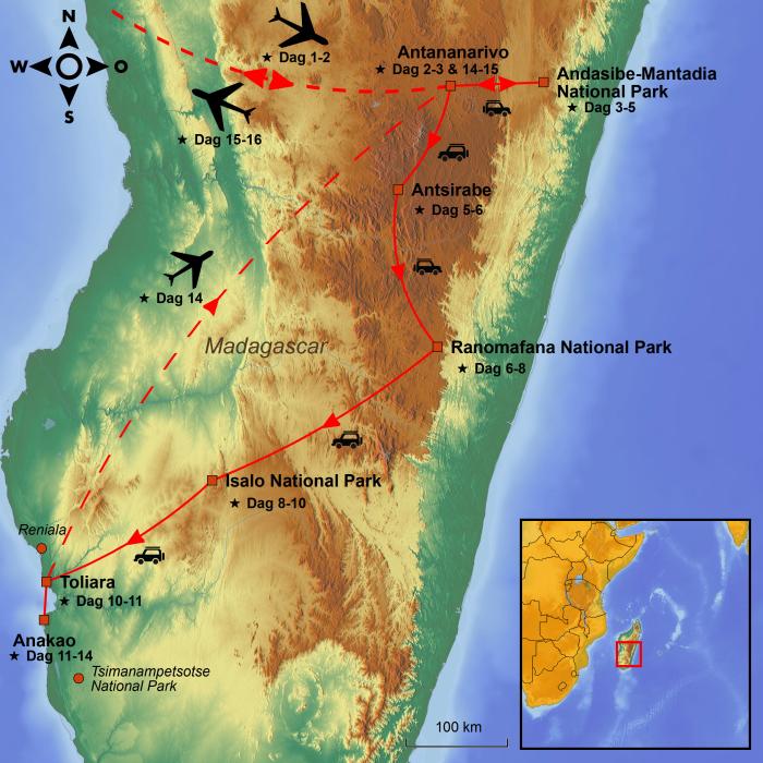 I dag er der afrejse fra valgte lufthavn. Rejsen går – med mellemlanding(er) undervejs – til Madagaskar, den store røde ø i Det Indiske Ocean.