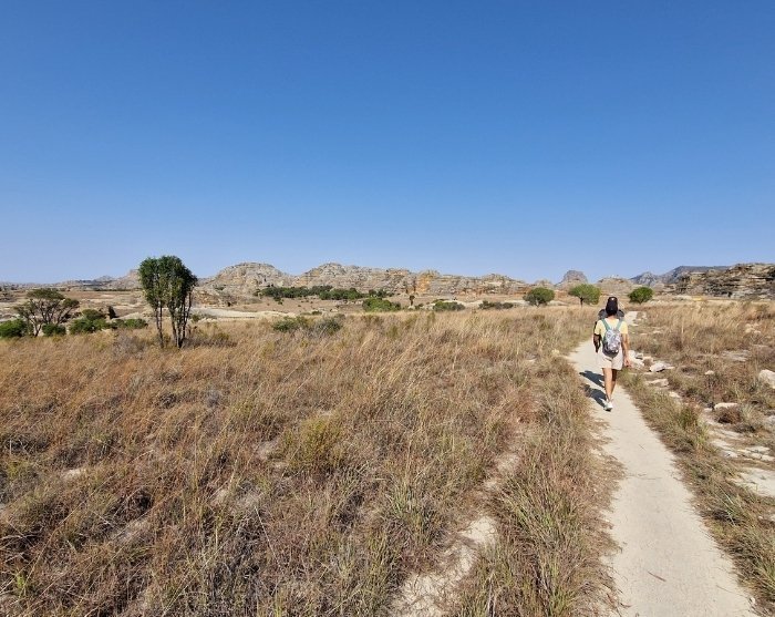 Herfra er der godt en times kørsel tilbage, før du når Isalo. Landskabet er kendetegnet ved lange, øde strækninger med knæhøjt græs, så langt øjet rækker. Det ligner næsten en østafrikansk savanne, og det er nemt at forstå, hvorfor Bara-folket driver deres kvæg her.