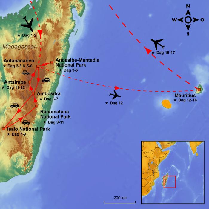 I dag er der afrejse fra valgte lufthavn med mellemlanding(er) undervejs., Rejsen går til Madagaskar, den store røde ø i Det Indiske Ocean og verdens 4. største ø