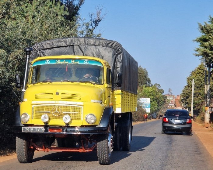 Efter et par timers kørsel gen nem det let bakkede plateaulandskab med de mange rismarker, skifter landskabet. Bakkerne bliver højere, og skovene tættere. Chaufføren navigerer øvet gennem hårnålesvingene, og hist og her kan du skimte floden i bunden af dalene. Trafikken gilder fint – indtil den ikke gør det mere. Gamle Mercedes Benz-lastbiler fra franskmændenes tid holder skødesløst parkeret i vejkanten og forsinker indimellem trafikken. Eller en lille vejbod er så populær, at trafikken går helt i stå. ”Mura mura”, som de siger i Madagaskar – bare tag det roligt.