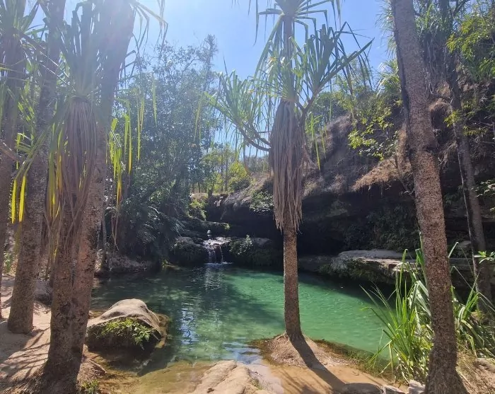 Forrevne sandstensformationer, dybe kløfter, oaser med irgrønne palmeomkransede søer og flade slettelignende områder. Isalo har det hele, og det er da også Madagaskars mest kendte nationalpark.