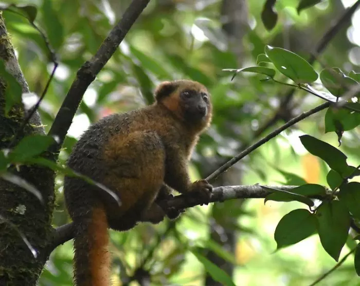 Formiddagen går med en guidet vandretur i parken. Ligesom i Andasibe er der både en ”spotter” og en guide, og spotteren løber også her i forvejen for at lede efter lemurerne. Det er især den gyldne bambuslemur, du er på udkig efter her. Den er sjælden, og den er én af verdens mest truede lemurarter. Man opdagede den først i 1986, hvilket er lidt utroligt, når man tænker på, at den er godt og vel en halv meter høj! Opdagelsen var direkte årsag til, at Ranomafana blev til en nationalpark – det var simpelthen tydeligt, at man var nødt til at gøre noget, hvis man skulle redde den gyldne bambuslemur. Du skal være nogenlunde til bens på formiddagens vandretur. Det er ikke som sådan anstrengende, men stierne kan være temmelig mudrede, og man skal sommetider mase sig gennem krattet for at komme frem til træerne, hvor lemurerne sidder. Til gengæld er belønningen enorm, når man ser det lille pelsede dyr sidde og guffe på sin bambuspind.