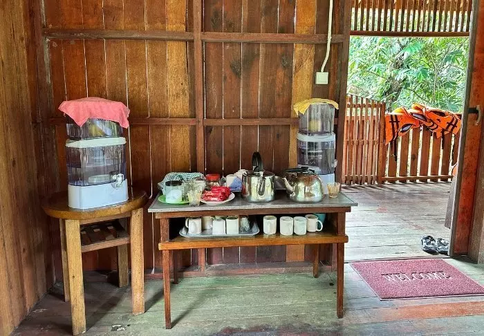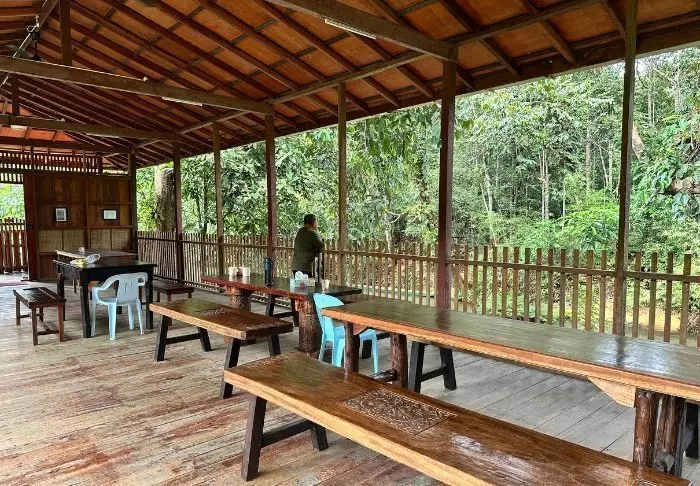På lodgens store træveranda serveres måltiderne, som består af lokalt inspirerede retter tilberedt med friske ingredienser, hvis smage forstærkes af de eventyrlige omgivelser. Mens maden nydes, kan du udveksle historier og oplevelser med andre rejsende og se frem til en aften, hvor du kan tilbringe tid med Iban-familierne og lære om deres kultur og traditioner. Om aftenen, når det er tid til at gå til ro, kan du trygt falde i søvn til nattens beroligende lyde fra regnskoven og flodens stille rislen.