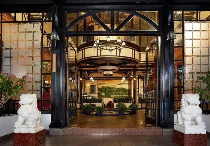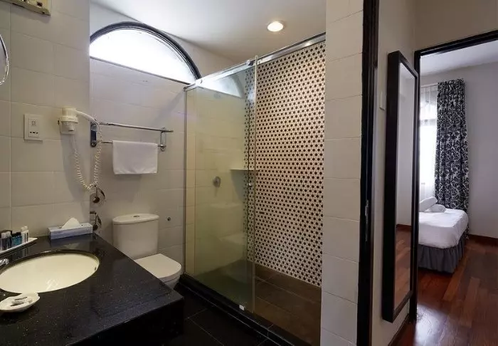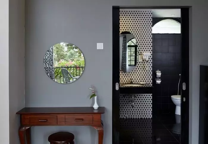 Resortets ydre er i britisk kolonitidsstil med hvide facader, sorte sprossede vinduer og fine balkoner pyntet med smukke blomster fra området.