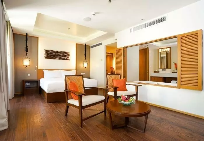 Resortets suiter er rummelige og indrettet med sans for detaljer. De store vinduer inviterer dagslyset ind og giver samtidig en fantastisk udsigt over den omkringliggende natur. Du bor som standard i Damai Suite, hvor du finder en king-size seng, et separat opholdsområde og et luksuriøst badeværelse med badekar og regnbruser. Derudover er suiterne udstyret med moderne faciliteter som aircondition, Wi-Fi, minibar, værdiboks, fladskærms-TV samt te- og kaffestation, hvilket sikrer en bekvem base.