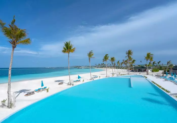 Denne luksuriøse ø er formet som en sommerfugl, og ligger ca. 40 minutter væk fra Malé i speedbåd.