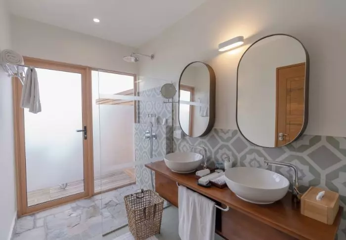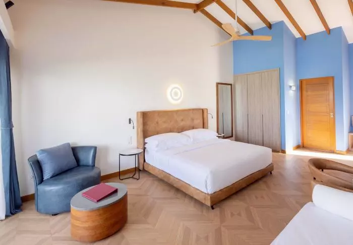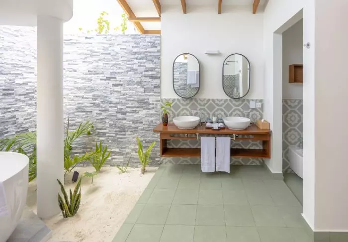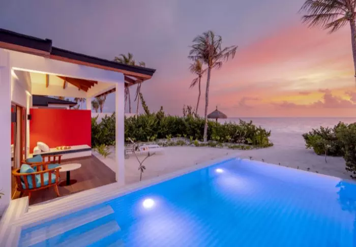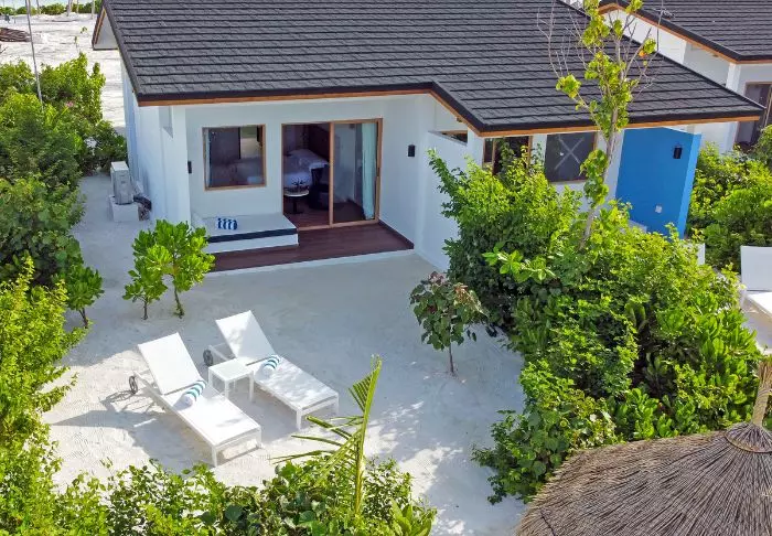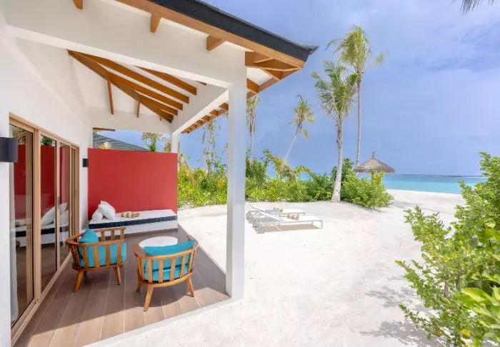 Beach villaen er 50 m2 og har plads til enten 2 voksne og 1 barn eller 3 voksne. De er alle placeret på østsiden af øen, hvilket giver dig mulighed for at vågne op og se den smukke solopgang. Værelserne er alle indrettet i friske farver og toner, som komplimenterer omgivelserne på Maldiverne. Der er tilhørende badeværelse med ”open-air” badefaciliteter. Som prikken over i’et ligger villaen med direkte adgang til den kridhvide sandstrand.
