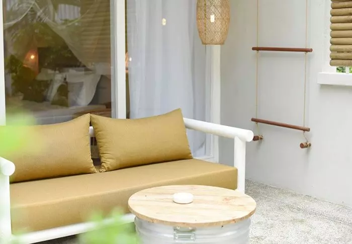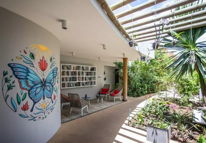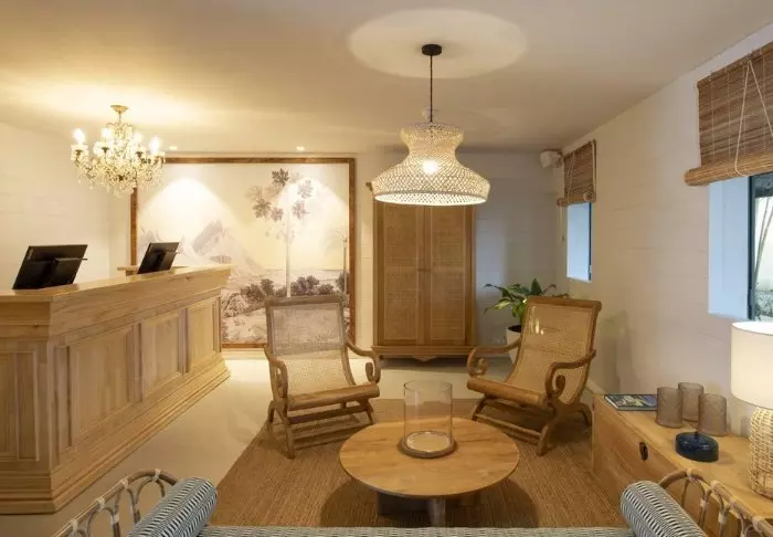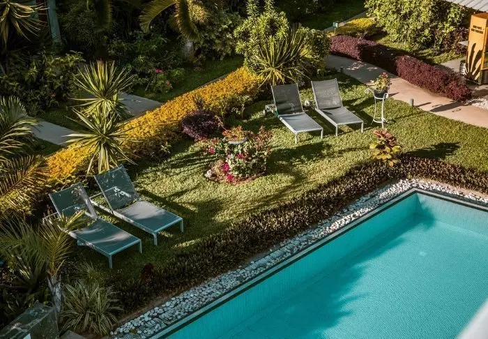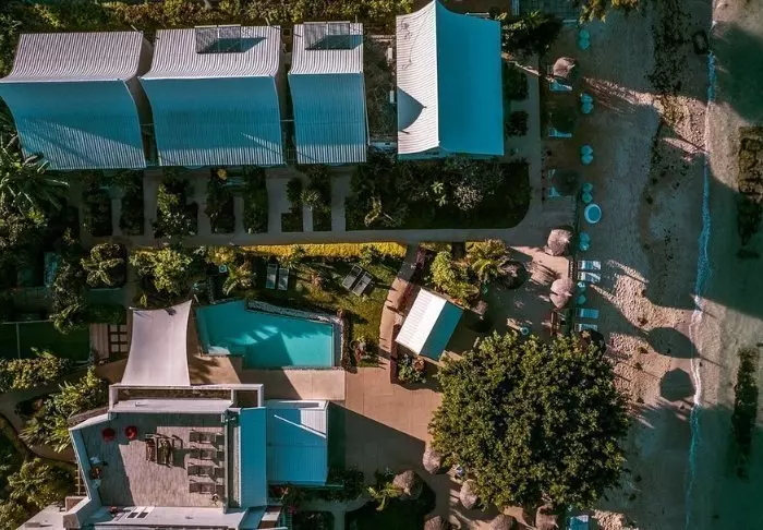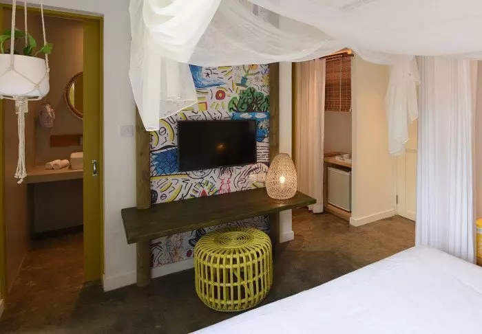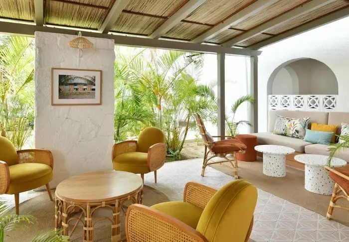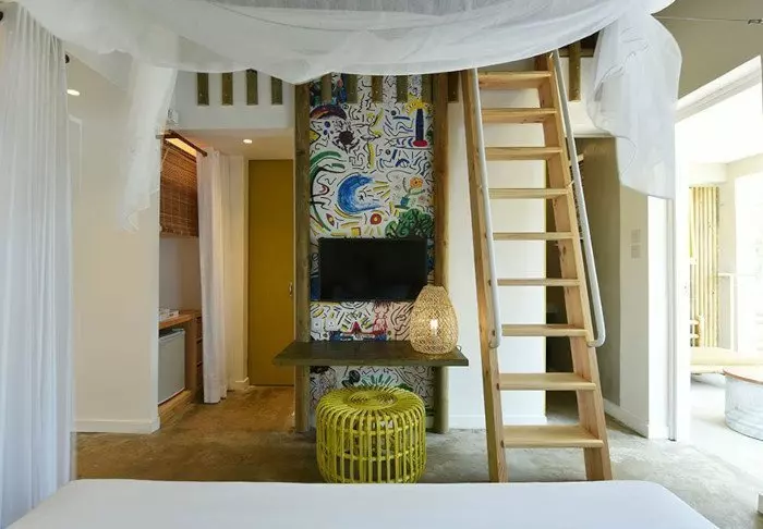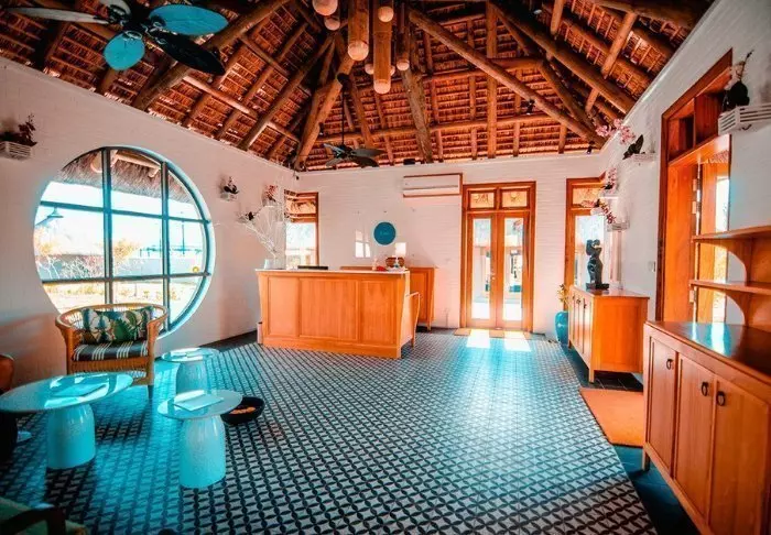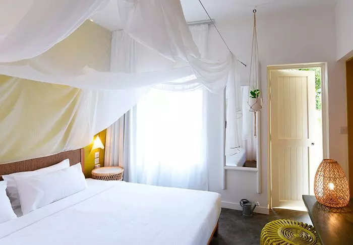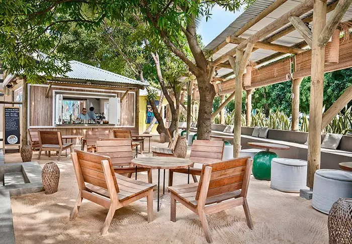 Her er ingen høje mure eller elektriske porte. I stedet er der hængekøjer, sand på gulvet i lobbyen og en hyggelig, charmerende og intim stemning.