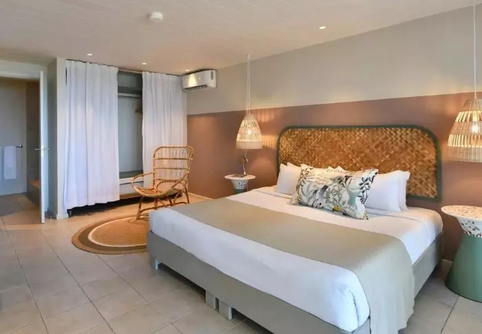 Værelserne er store, rummelige og indrettet i mauritisk og asiatisk stil med enten balkon eller terrasse. Alle værelser vender ud mod havet. Værelserne er alle udstyret med aircondition, minibar, te- og kaffefaciliteter, fladskærms-tv – og alt hvad du ellers forventer af et femstjernet resort. Der er gratis wi-fi på hele hotellet.
