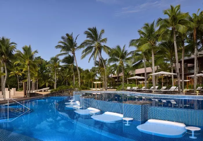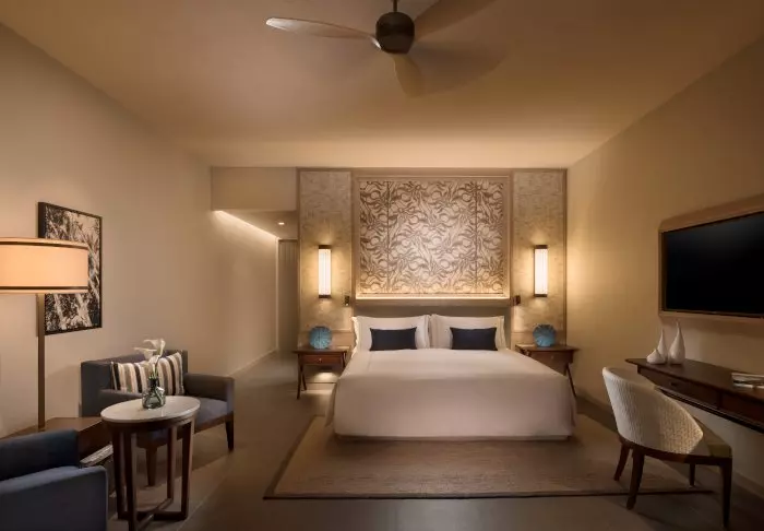 Her er tre værelseskategorier, og takket være hotellets snedige layout er du aldrig langt fra vand – om det er pool eller strand.