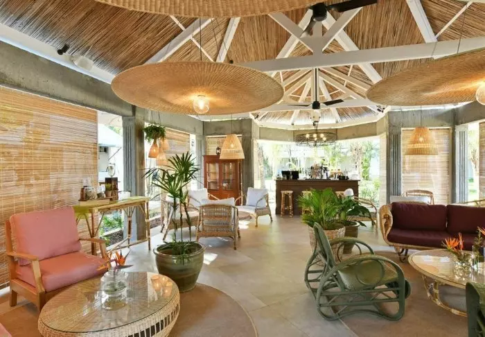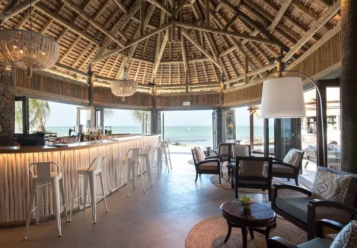 Selve hotellet er enormt charmerende – en slags moderne kolonistil. Grønne planter, træskodder, bambusmøbler og lyse farver præger indretningen i både lobby og restaurant. Den lange infinity pool er placeret i resortets midte, og tættest på stranden ligger den meget hyggelige strandbar/restaurant. Lige nedenfor strandbaren finder du “bådhuset”, hvor du kan låne kajakker eller paddleboard. Det er også herfra, du kan hoppe på den gratis “taxa-båd”, som sejler dig ind til centrum af Grand Baie. Med maverne – eller shoppingposerne – fyldte kan du nemt slentre hjemad til hotellet igen på under 15 minutter.