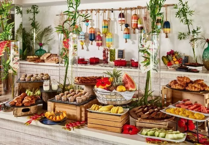 Hotellet har tre restauranter, ligesom der er en restaurant/bar på stranden. Der findes 2 store poolområder – et til alle og et til voksne. Til børnene er der kids-club, og til de voksne er der et fantastisk spaområde med mulighed for forskellige ansigts- og kropsbehandlinger.