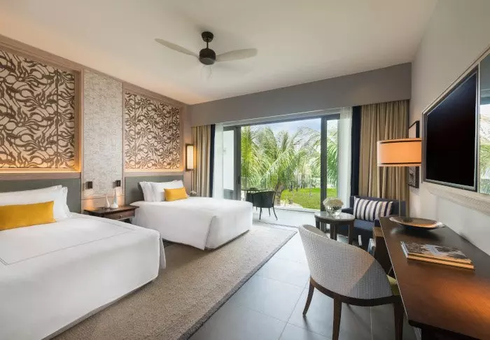 Her er 261 værelser, som alle har udsigt til enten havet eller til den store tropiske have, som hotellet er placeret i. Alle værelser har egen balkon eller terrasse. Her er desuden aircondition, TV og minibar.