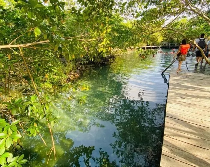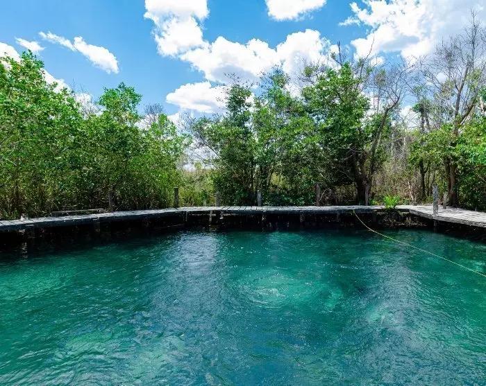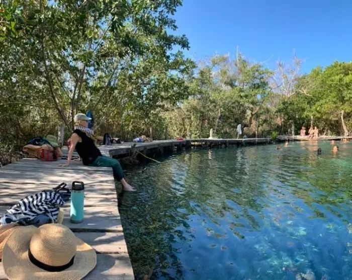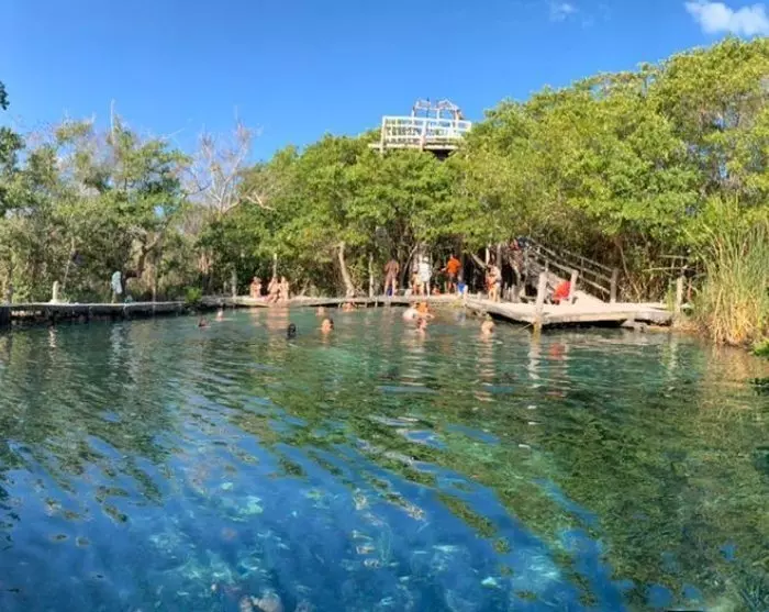 Der er også tid til at få en forfriskende dukkert i det krystalklare vand i cenoten Ojo de Agua, som siges at have helbredende egenskaber.