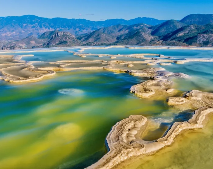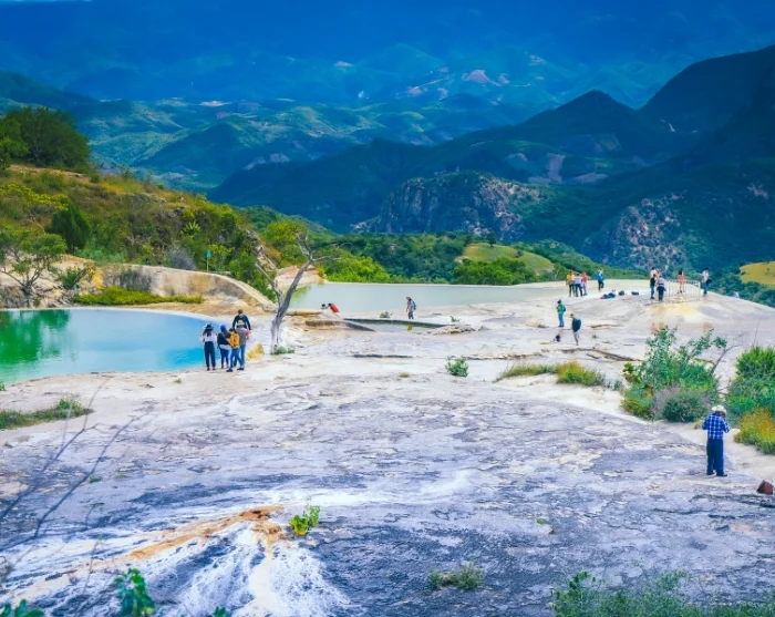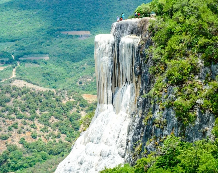Herefter går turen videre til et af Oaxacas mest imponerende naturfænomener, Hierve el Agua, som er forstenede vandfald, der er dannet over tusindvis af år. Navnet ”Hierve el Agua” betyder ”vandet koger” på spansk, og kommer fra de termiske kilder, der springer ud på stedet. Selvom vandet ser ud til at boble som i en gryde, er det i virkeligheden perfekt til en forfriskende svømmetur. Hop en tur i de naturlige pools, mens du nyder en imponerende udsigt over landskabet.