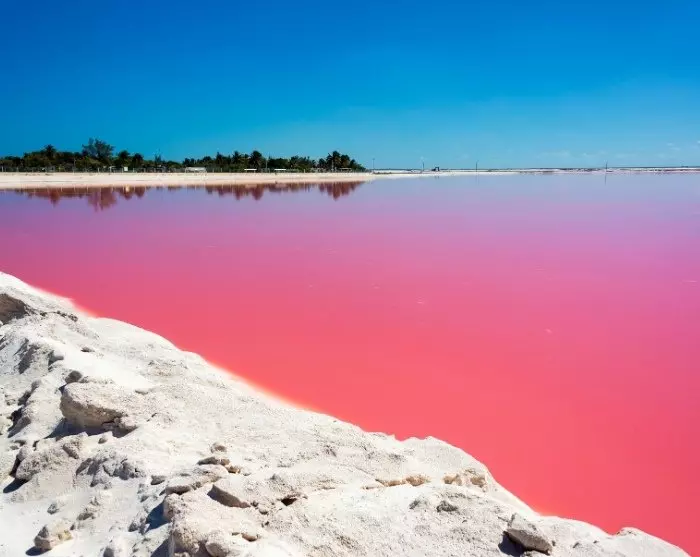 Herefter kører du ud til de flotte lyserøde menneskeskabte søer, Las Coloradas, hvor du kan tage nogle smukke billeder. Den røde farve i vandet skyldes en høj koncentration af salt og mikroorganismer som rødalger og plankton.
