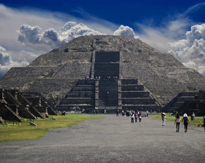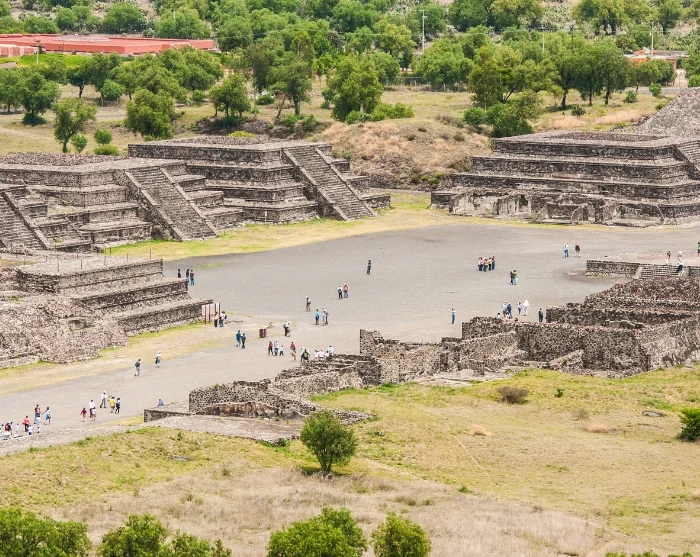Herefter går turen videre til et af Latinamerikas største ruinkomplekser, tempelbyen Teotihuacán, som betyder ”Stedet hvor mennesker blev guder”. Du går langs den 3 km lange Avenida de los Muertos (Dødens Avenue), hvor du ser de enorme templer og pyramider, som kan dateres tilbage til 200 år f.Kr., men som er bygget over en lang periode. Her kan nævnes Quetzalcoatl-templet, hvor flere end 200 ofrede krigsfanger er fundet, Quetzalpapalotl-paladset, Månepyramiden (60 m) og Solpyramiden (70 m), som er bygget i centrum af byen ovenpå en 100 m lang hule, hvor det siges, at menneskeheden blev skabt.