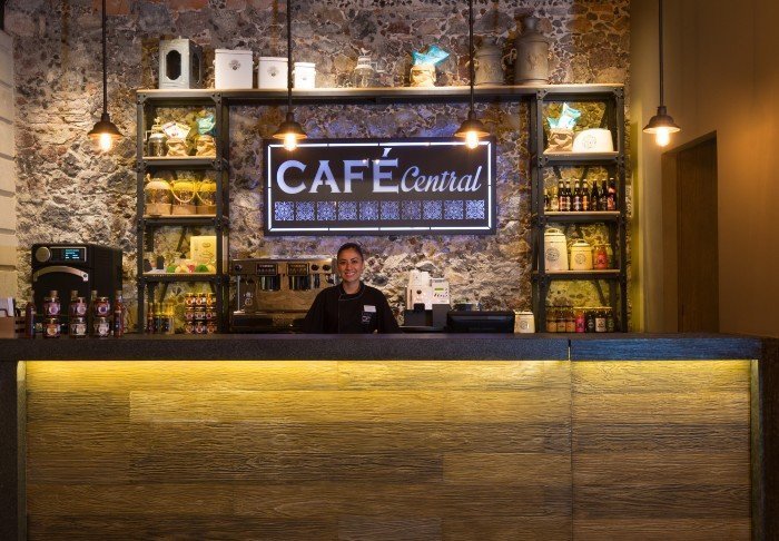I hotellets café og kaffebar serveres din inkluderede morgenmad som buffet i hyggelige omgivelser. Cafeén har også åbnet for let frokost og aftensmad, men bemærk at hotellet ikke har egen restaurant. Her anbefaler de søsterhotellet Hotel Zócalo Centrals tagterrasse-restaurant, Balcón de Zócalo, hvor du kan glæde dig til en mexicansk gastronomisk oplevelse, samtidig med du har en fantastisk udsigt ned over byen. Denne restaurant ligger ca. 500 meter fra hotellet.
