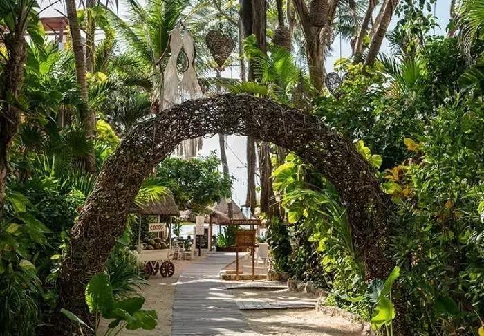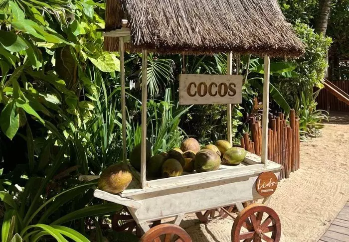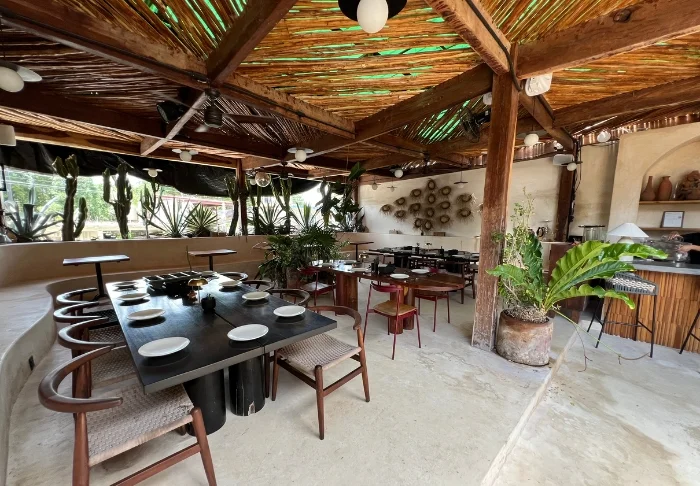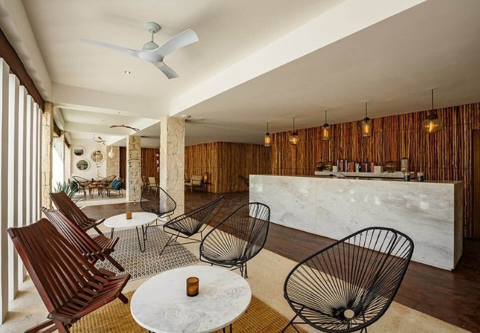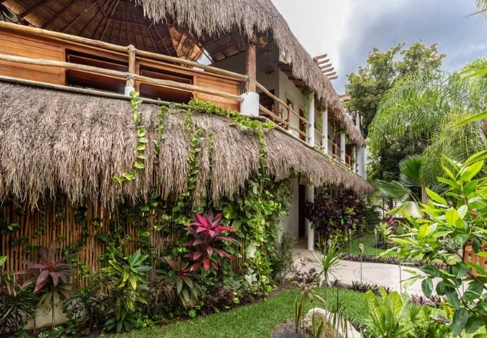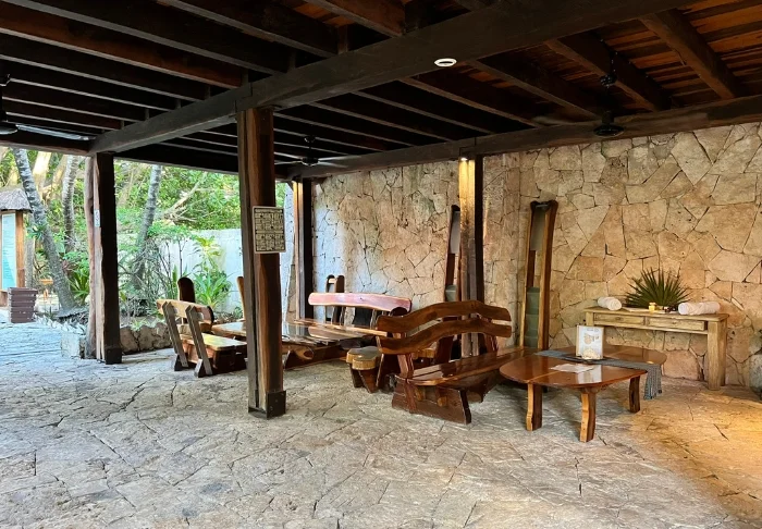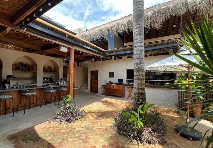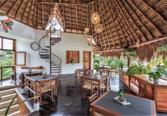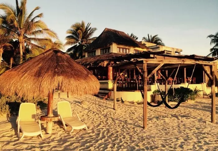 Både hotellets reception og restaurant er bygget under en høj, stråtækt palapa, som er en traditionel mexicansk byggestil, hvor man bruger naturlige materialer som træ, bambus og tørrede palmeblade. Udover at være superflotte, så giver de åbne sider og det luftige tag god ventilation, hvilket gør dem ideelle i varme og fugtige klimaer.