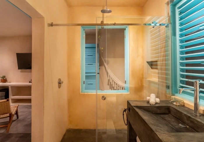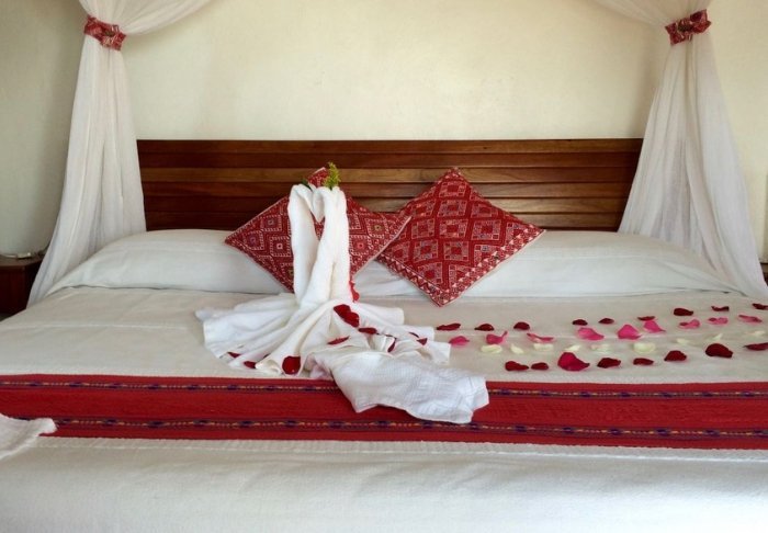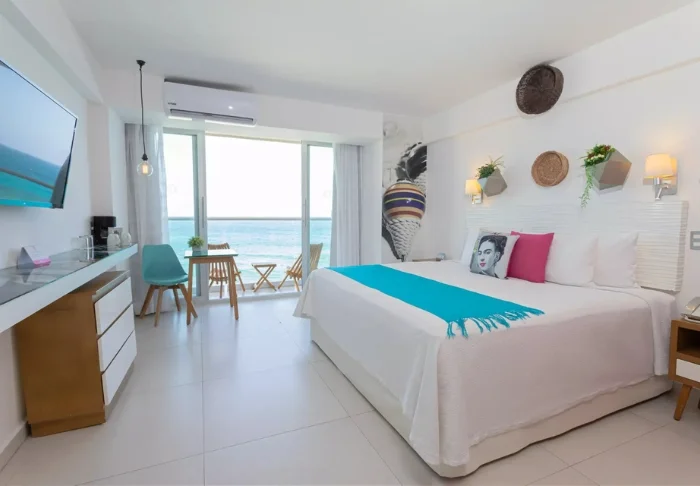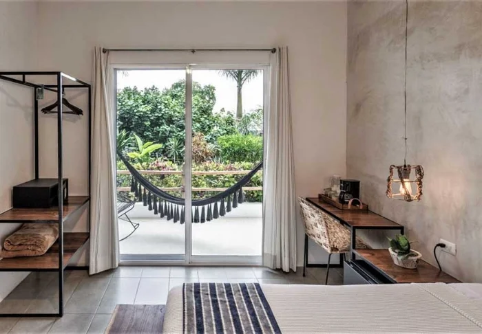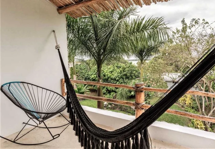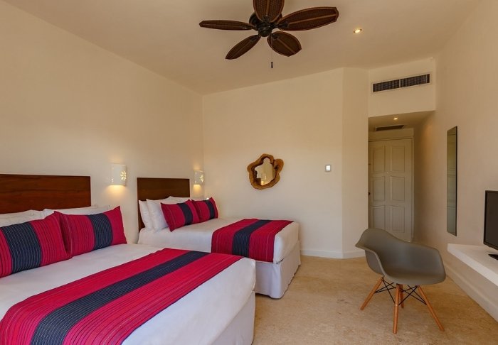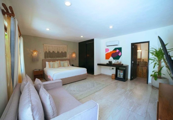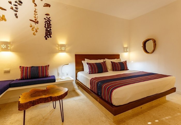 Her er blot 58 værelser, som er elegant indrettet i lyse farver med stemningsfuldt mexicansk kunst på væggene. Alle er udstyret med eget badeværelse med toiletartikler og hårtørrer, aircondition, loftsvifte, værdiboks, wi-fi, tv, køleskab og enten en lille terrasse eller altan med hængekøje.