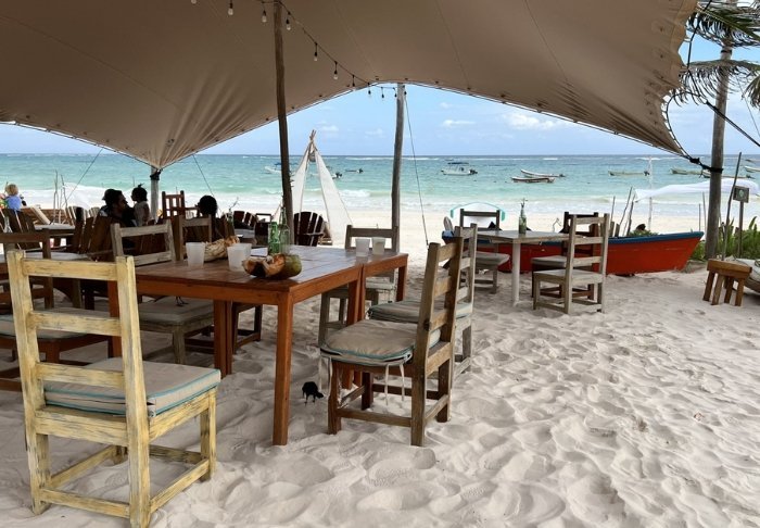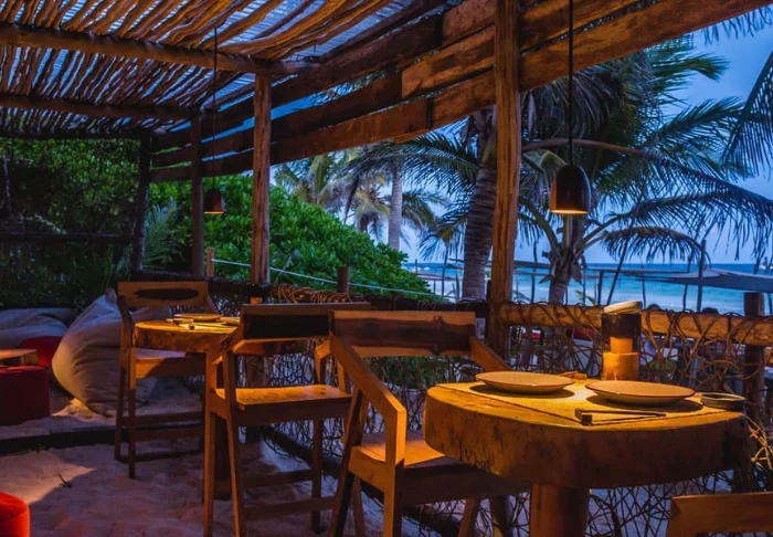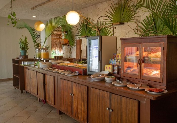 Hotellet har både en strandbar, hvor du kan nyde kolde drinks eller snacks, samt deres egen mexicanske open-air restaurant, hvor du sidder med fødderne i sandet og har udsigt over havet. Her serveres din inkluderede morgenmad og senere på dagen bliver menukortet skiftet til frokostretter. I højsæsonen har restauranten også åbent til aftensmad. Men ellers har du som gæst også mulighed for at nyde din aftensmad på en af de nærliggende restauranter, som både har fisk og skaldyr, mexicanske- og internationale retter på menukortet. Du kan også tage ind til Tulum by, hvis du ønsker et større udvalg af restauranter og barer.