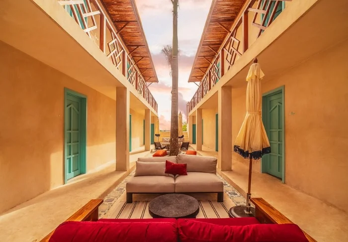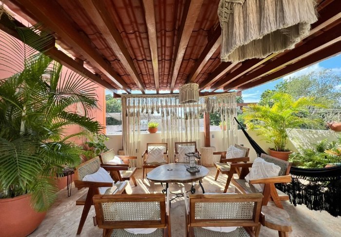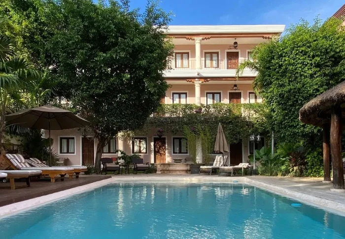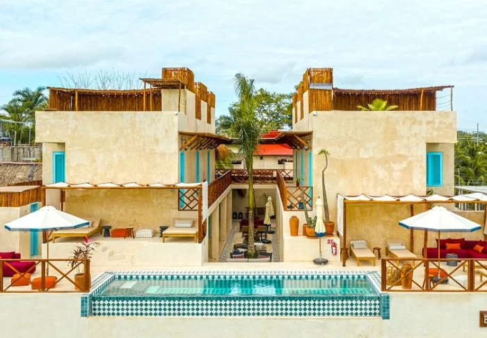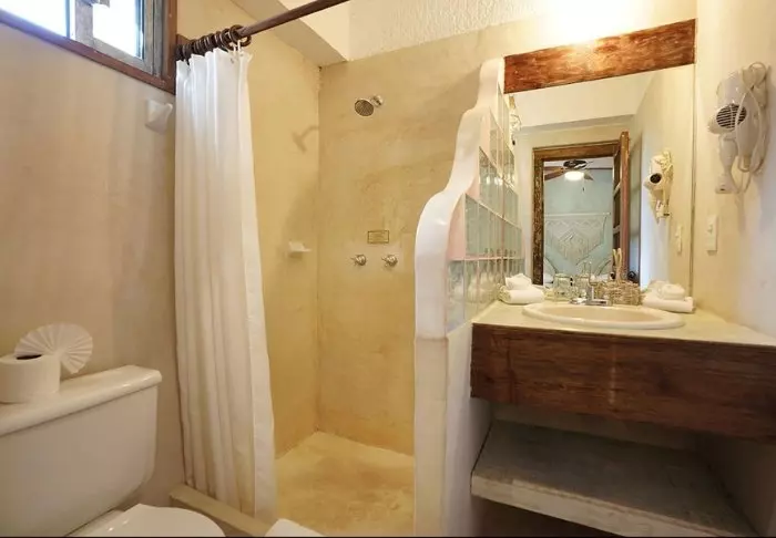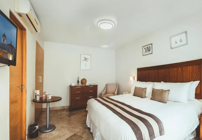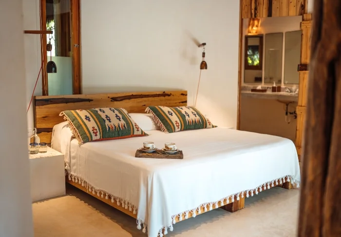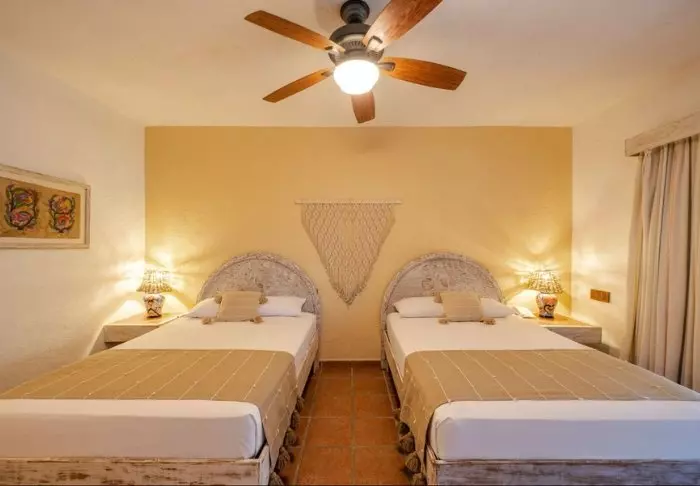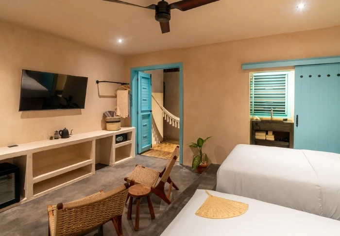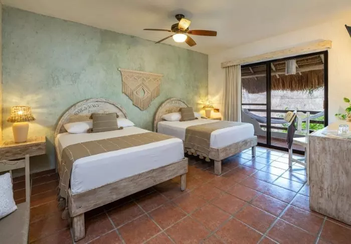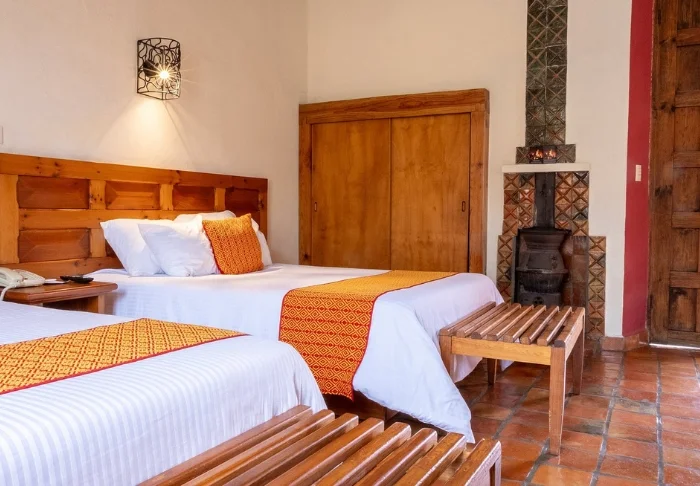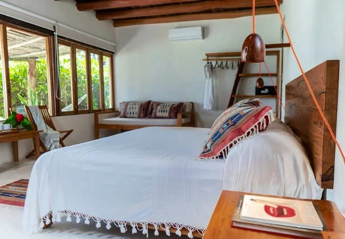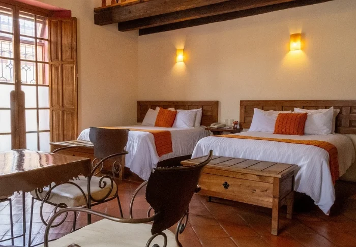 Hotellet har 33 værelser, der alle er indrettet lyst i rustik mexicansk stil med træmøbler og dekorative detaljer, der tilføjer stedet en afslappet og hjemlig følelse.