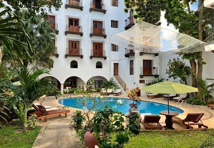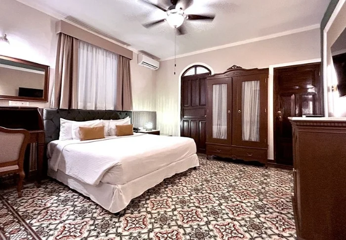 Hotellet er også en historisk kolonitidsbygning med mange smukke detaljer, som buer i loftet og farverige kakler i gulve og med et hyggeligt atrium i midten af bygningen.