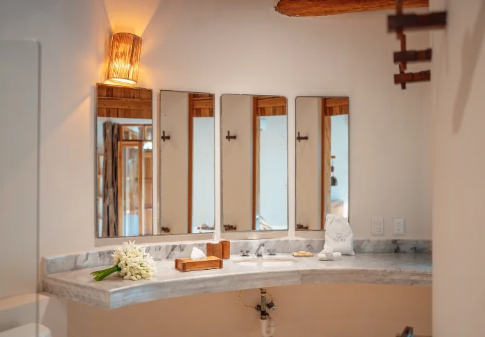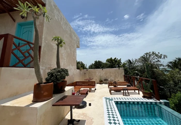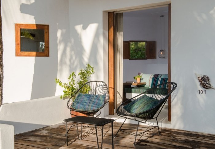 Dette intime tilflugtssted byder på fine deltaljede værelser, som er udstyret med aircondition, loftvifte, wi-fi og værdiboks. Her er blot 9 værelser, som alle har egen terrasse. Her har du mulighed for at falde i søvn til lyden af bølgernes brusen. Når du vågner, kan du lægge dig ud i hængekøjen, mens du nyder, hvordan solen lige så stille dukker op i horisonten og maler klare abstrakte farver hen over himlen.
