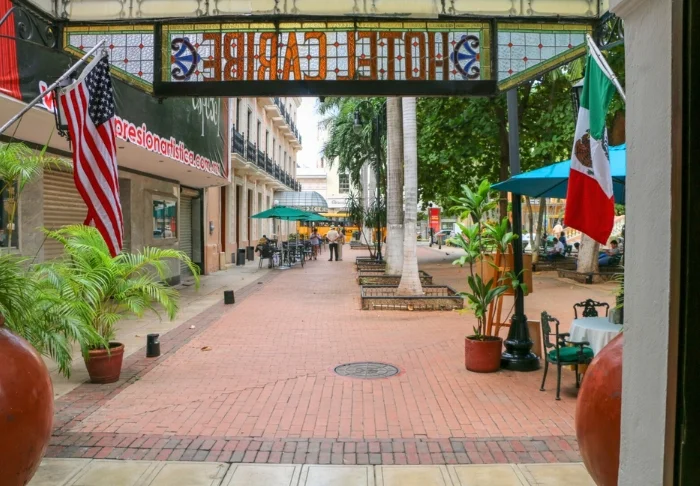 Hotel Caribe ligger ud til en lille plaza, ca. 3 minutters gang fra byens ”zocalo”, hvor der summer af liv.