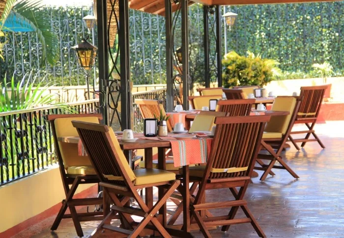 Morgenmaden serveres i den hyggelige gårdhave, ”El Patio”. Her kan du også bestille frokost og aftensmad og smage på forskellige traditionelle mexicanske retter. Der er også mulighed for roomservice, hvis dette skulle friste.