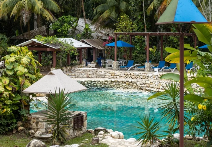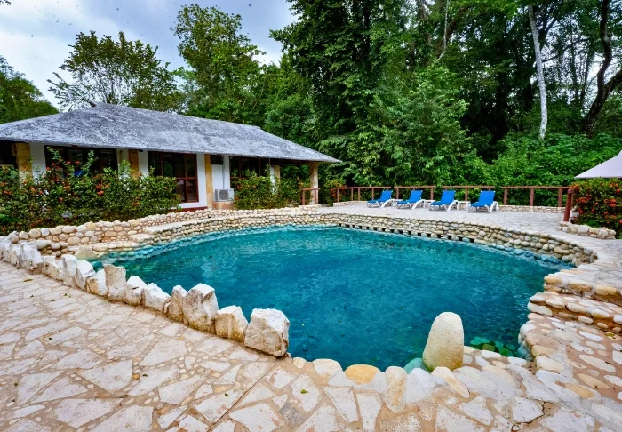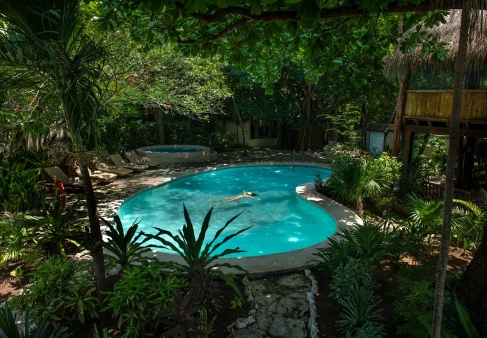 Tag en forfriskende dukkert i poolen, der minder om en naturlig cenote, eller nyd en kølig drink på en solseng under solens stråler.