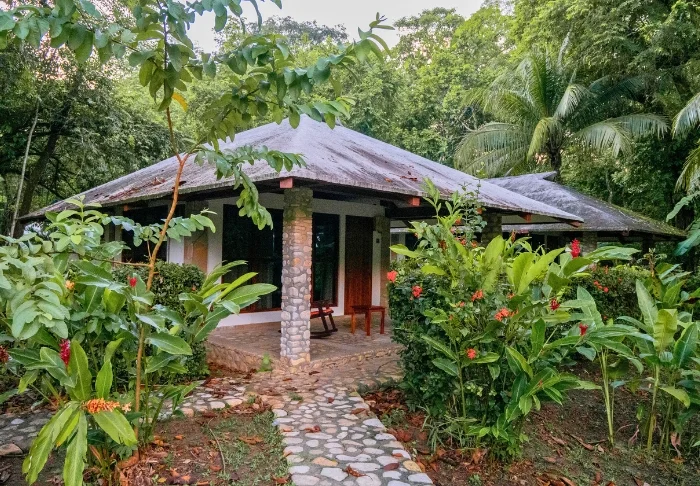 Værelserne ligger spredt ud i den frodige have, og de mange træer giver både en dejlig skygge for solen, men bidrager også til en ekstra naturoplevelse, fordi smukke eksotiske fugle kommer på besøg. Du kan også være heldig at se en doven varan eller leguan kravle ned fra et træ engang i mellem.
