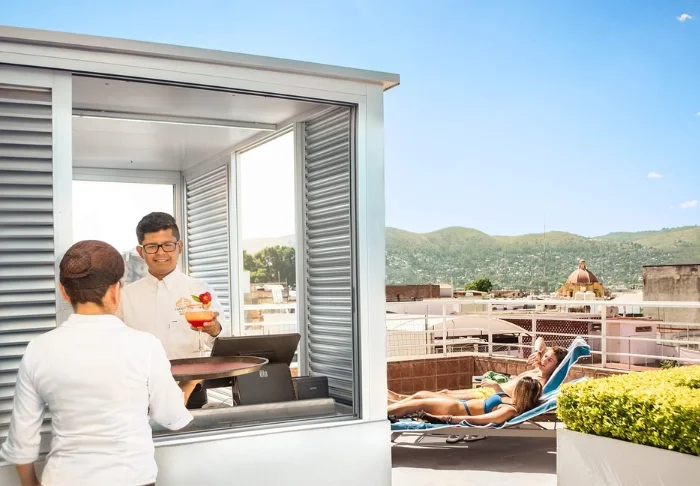 Når du trænger til et hvil efter en oplevelsesrig dag, kan du finde ro på en solvogn i den frodige gårdhave eller tage en bog med op på en af tagterrasserne og lægge dig godt til rette i en af de hæklede hængekøjer. Der findes to små pools på hotellet: en under åben himmel og en anden, som er overdækket.