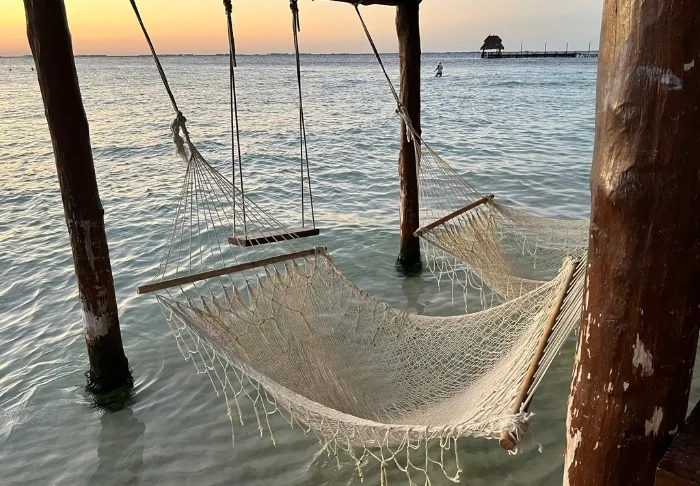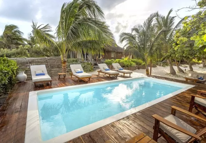 I forlængelse af hovedrestauranten ligger swimmingpoolen og den tilhørende poolbar, hvor du kan svømme hen efter noget koldt at drikke, uden at skulle op af poolen først. Der er både solsenge omkring poolen og i hotellets have, hvor du kan læse en god bog i skyggen af et palmetræ. Krydser du den lille sandvej, er du på Holboxs berømte strand med azurblåt vand og en lun havbrise. Her er der også solsenge til fri afbenyttelse, og du kan selvfølgelig bestille mad og drikkevarer herned og forkæle dig selv lidt ekstra.