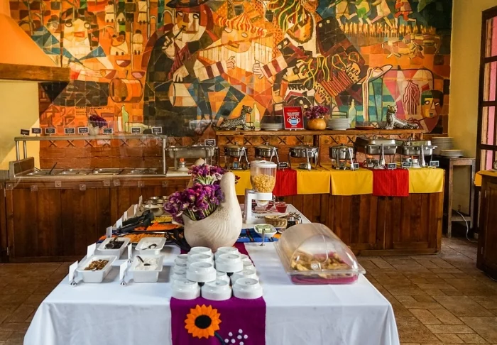 Morgenmaden serveres i den charmerende gårdhave, og i de omkringliggende gader finder du et væld af spisesteder, hvor du har mulighed for at prøve forskellige traditionelle mexicanske retter.