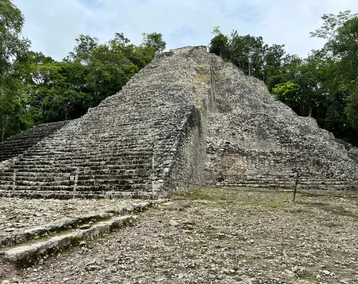 Første stop er Cobá, som engang var en af regionens største og mest betydningsfulde mayabyer. Cobá-ruinerne ligger gemt inde i junglen, hvilket giver stedet en eventyrlig og næsten hemmelighedsfuld stemning – så du kan godt finde din indre Indiana Jones frem. Ruinerne ligger spredt ud over et stort område, som er forbundet af gamle stisystemer kaldet sacbé. Du bliver kørt rundt i en cykeltaxa ad de snoede stier gennem den frodige vegetation og oplever de mystiske templer og den imponerende Nohoch Mul-pyramide, der med sine ca. 42 meter er den højeste pyramide på Yucatán halvøen, og som majestætisk rejser sig over trætoppene.