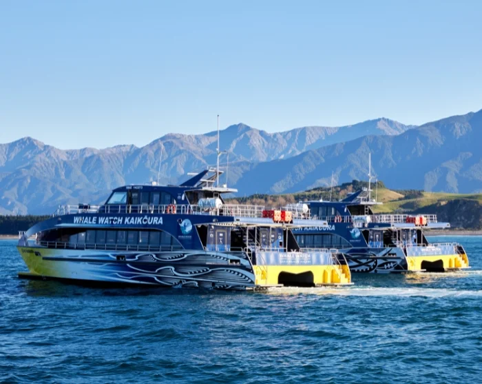 Når du har parkeret din bil og checke ind hos Whale Watch Kaikoura (min. 30 minutter før afgang), bliver du kørt i bus ned til South Bay Marina (ca. 10 min.), hvor du går ombord på en moderne katamaran, som er specialbygget til hvalsafari. Her står kaptajn og besætning klar til at give dig de bedste muligheder for at se hvaler og andre havdyr og -fugle.
