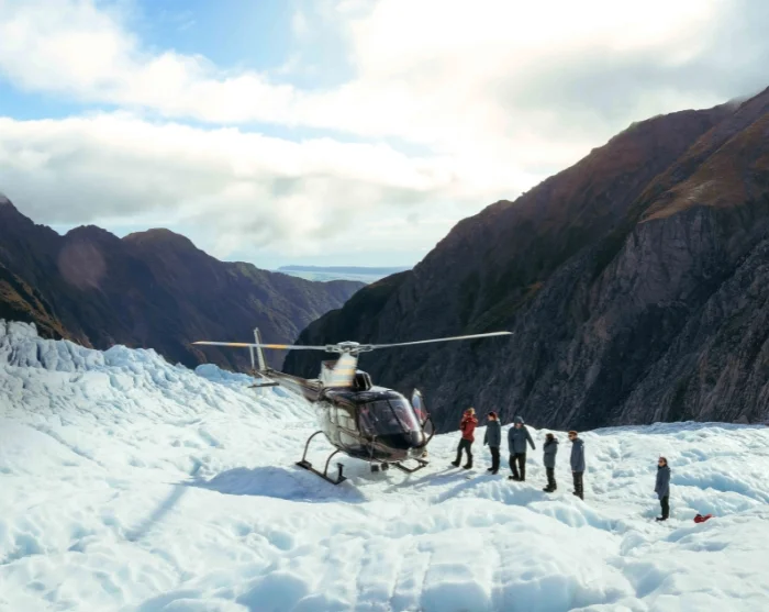 Vil du se den smukke Franz Josef-gletsjer fra oven og stå midt i det frosne islandskab? Så er denne tur lige noget for dig!