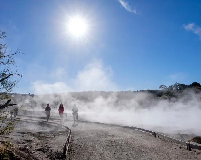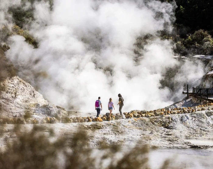 Ved ankomst starter din selv-guidede vandretur rundt i parken, som tager ca. 1-1,5 time. Du bliver mødt af et landskab af dampende svovlkilder, boblende mudderpøle og skoldhede vandfald – omgivet af svovlduft, varme tåger og krystalliserede mineralaflejringer. Ruten er tydeligt afmærket og nem at gå, og undervejs finder du informationstavler og udsigtspunkter, der forklarer områdets unikke geologi og maoriernes betydning.